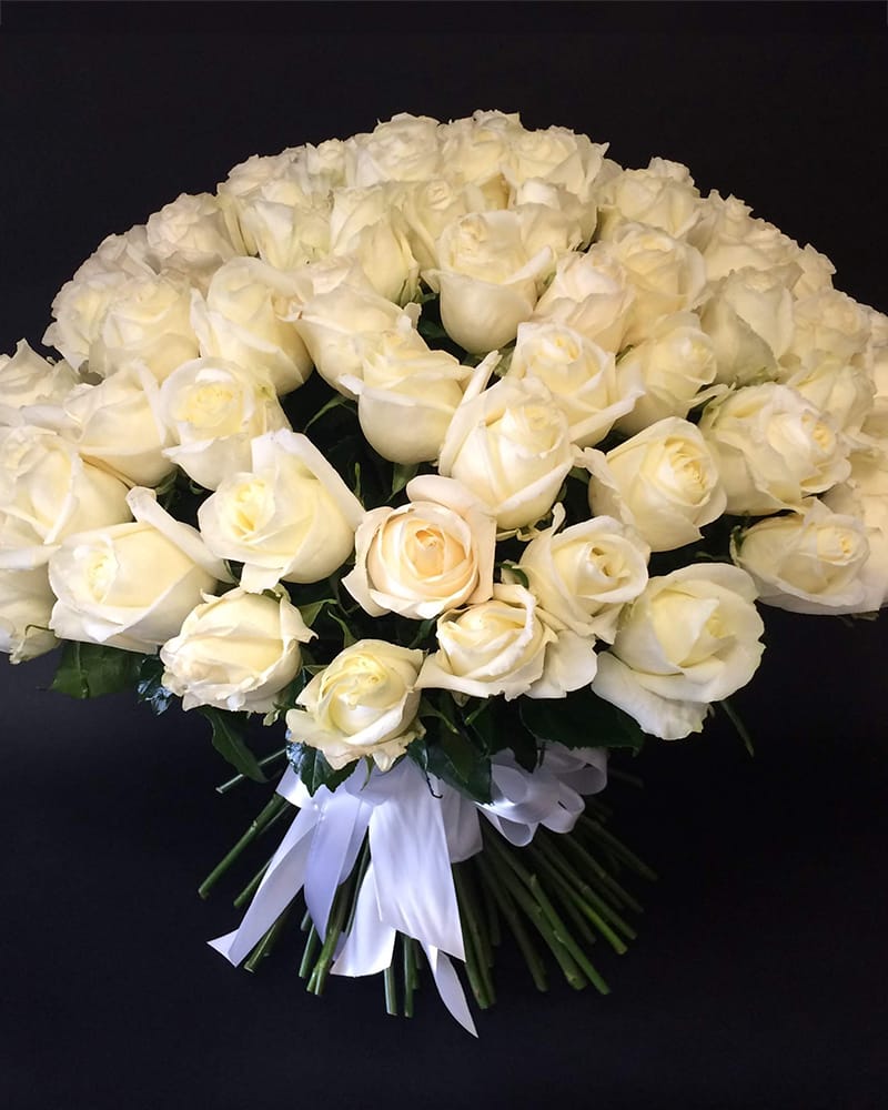 Sākums » Ziedu katalogs » Premium klases rozes » 101 balta 70 cm. gara Premium klases roze