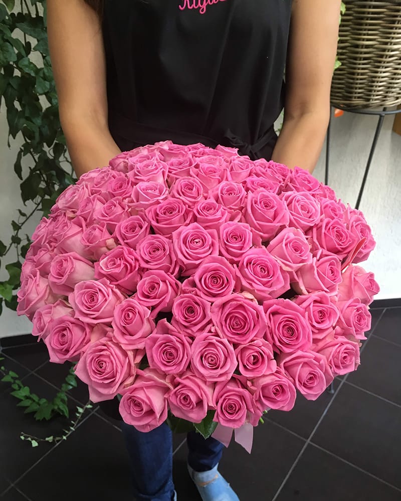 Sākums » Ziedu katalogs » 101 roze - ekskluzīvi rožu pušķi » 101 rozā roze