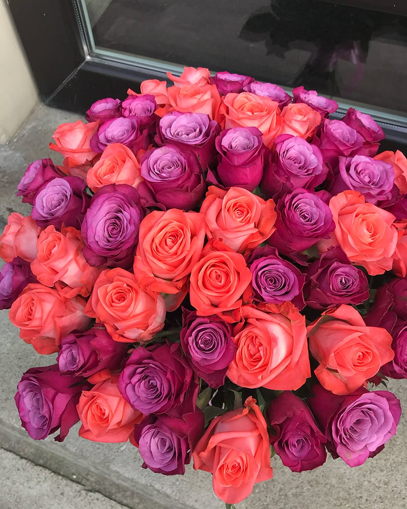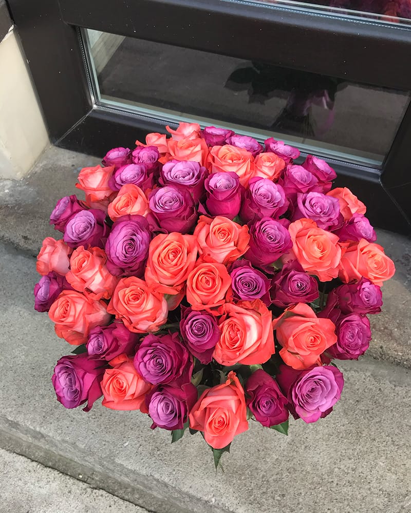 51 laša krāsas un violetas rozes