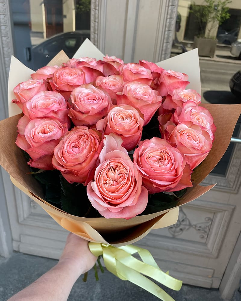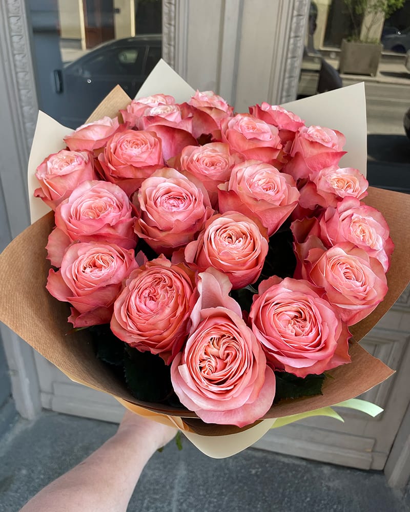 Persiku krāsas rožu pušķis Price range: 2,68 € through 2,99 €Izvēlieties