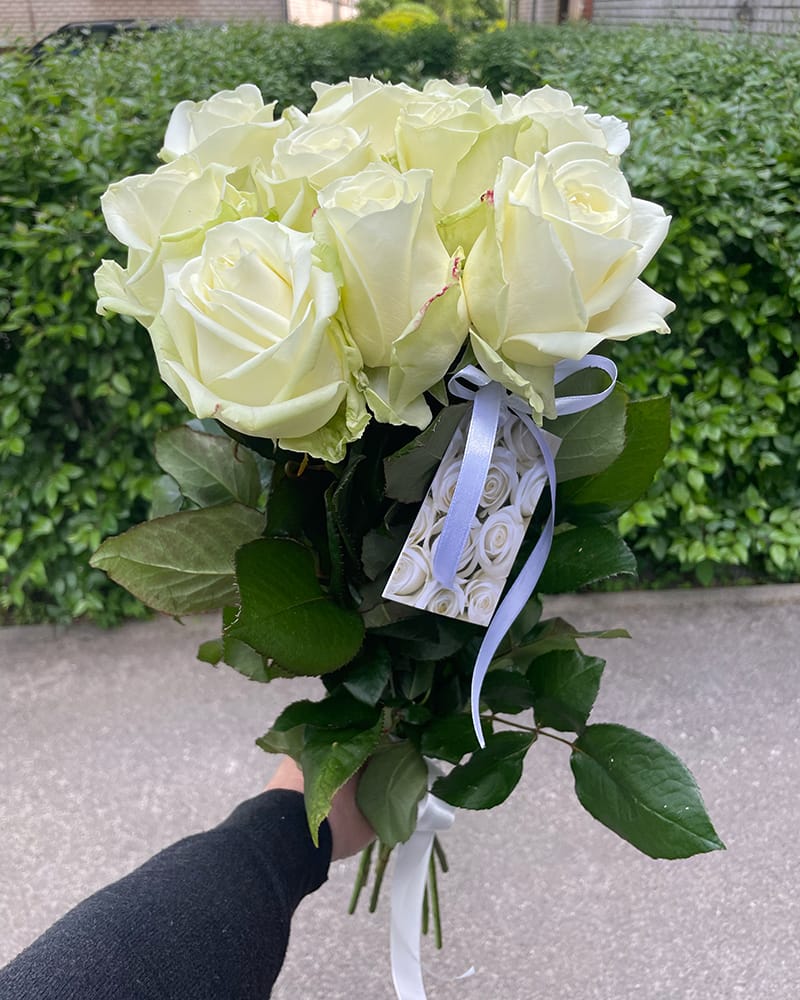 Sākums » Ziedu katalogs » Rozes » Baltu rožu pušķis
