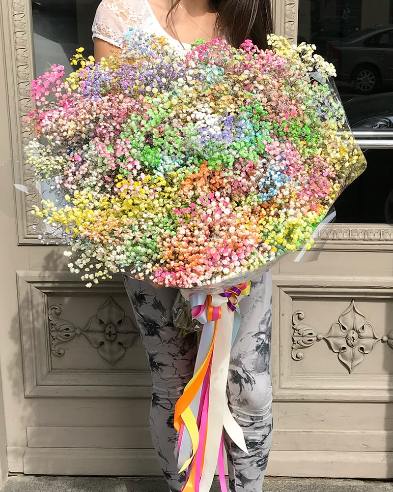 Ziedu pušķis krāsaina gypsofiliaDažādu krāsu Gypsophilia