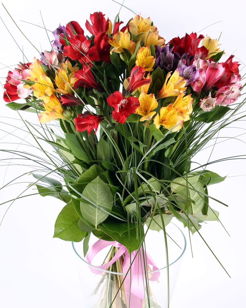 Sākums » Ziedu katalogs » Visi ziedi » Krāsainu Alstromēriju pušķis