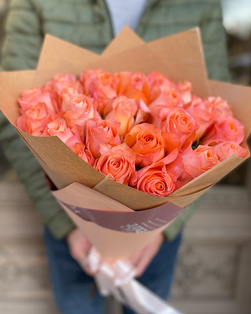 Sākums » Ziedu katalogs » Rozes » Laša krāsas rožu pušķis 50 cm