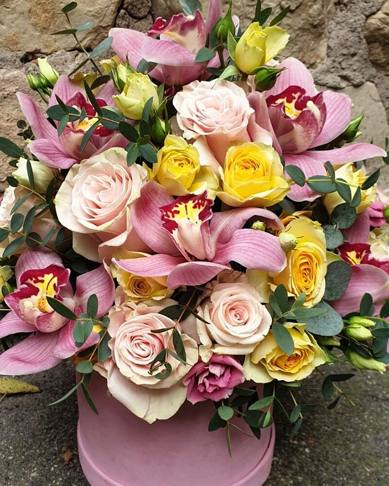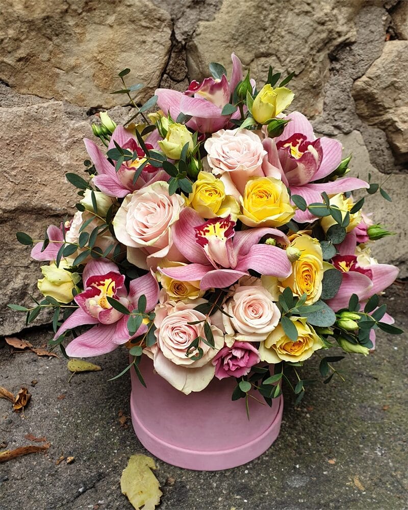 Sākums » Ziedu katalogs » Visi ziedi » Orhideju, rožu kompozīcija