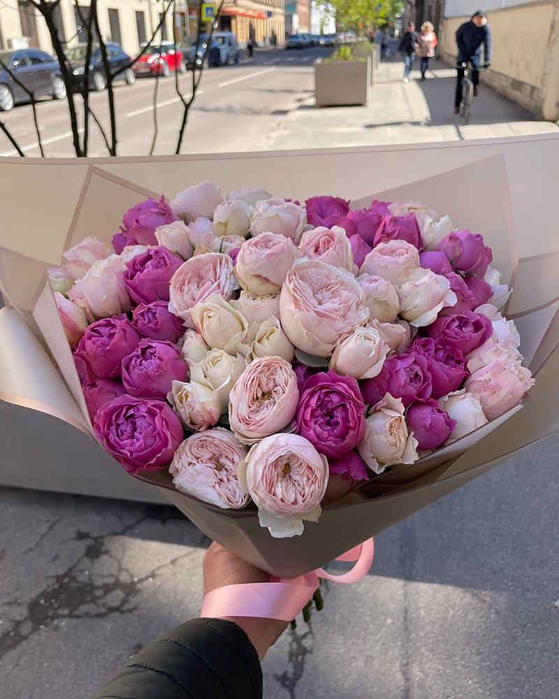 Peonijveida krūmrozesPeonijveida krūmrožu pušķis