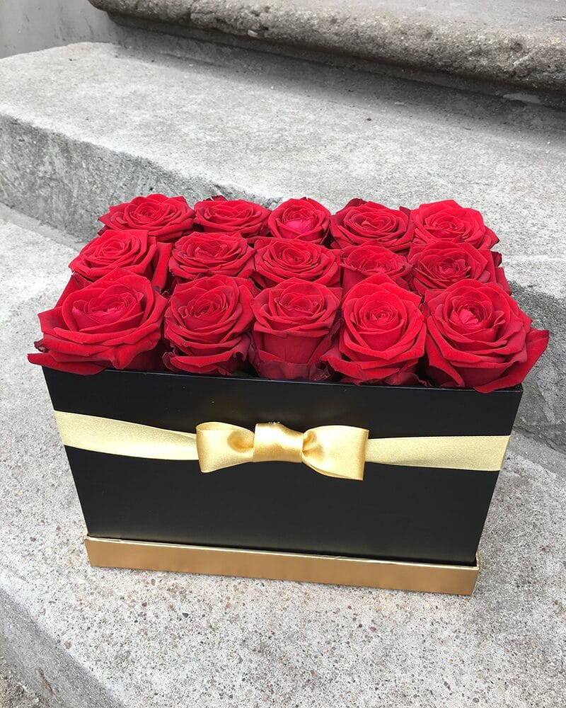 Sarkanas rozes melnā kastītēSarkanas rozes melnā kastītē
