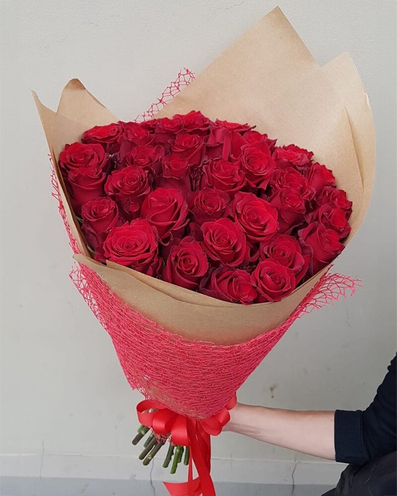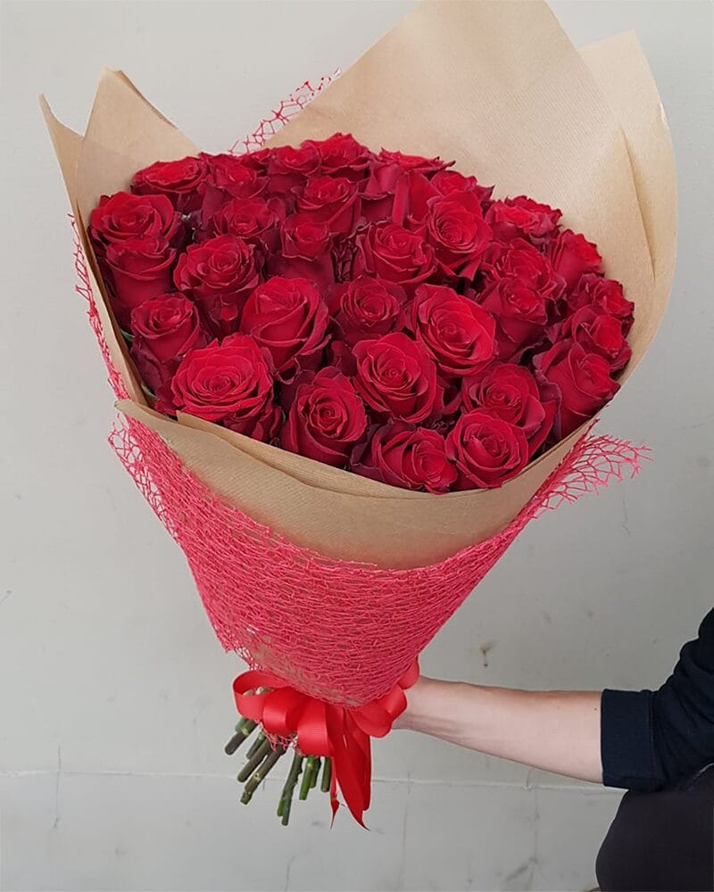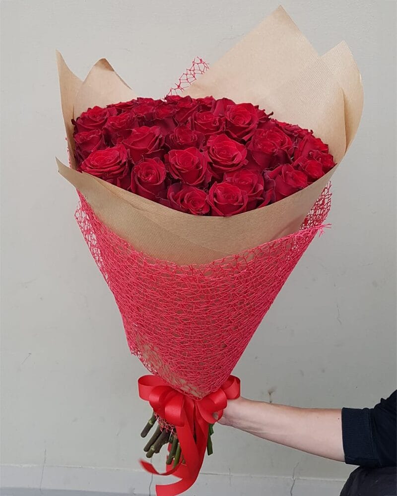 Sākums » Ziedu katalogs » Nedēļas piedāvājums -30% » Sarkanu rožu (50 – 60 cm) pušķis