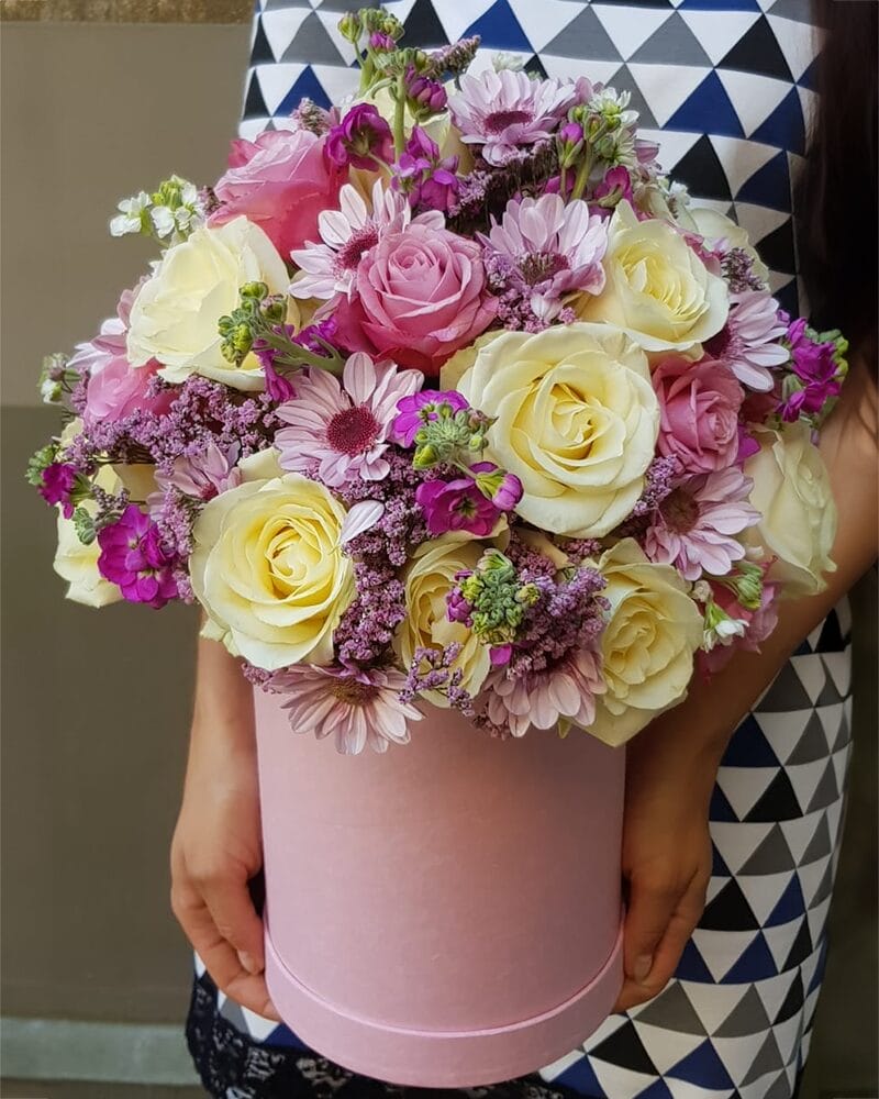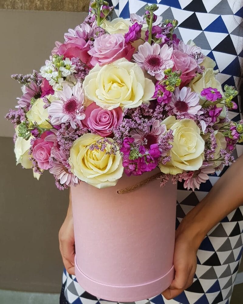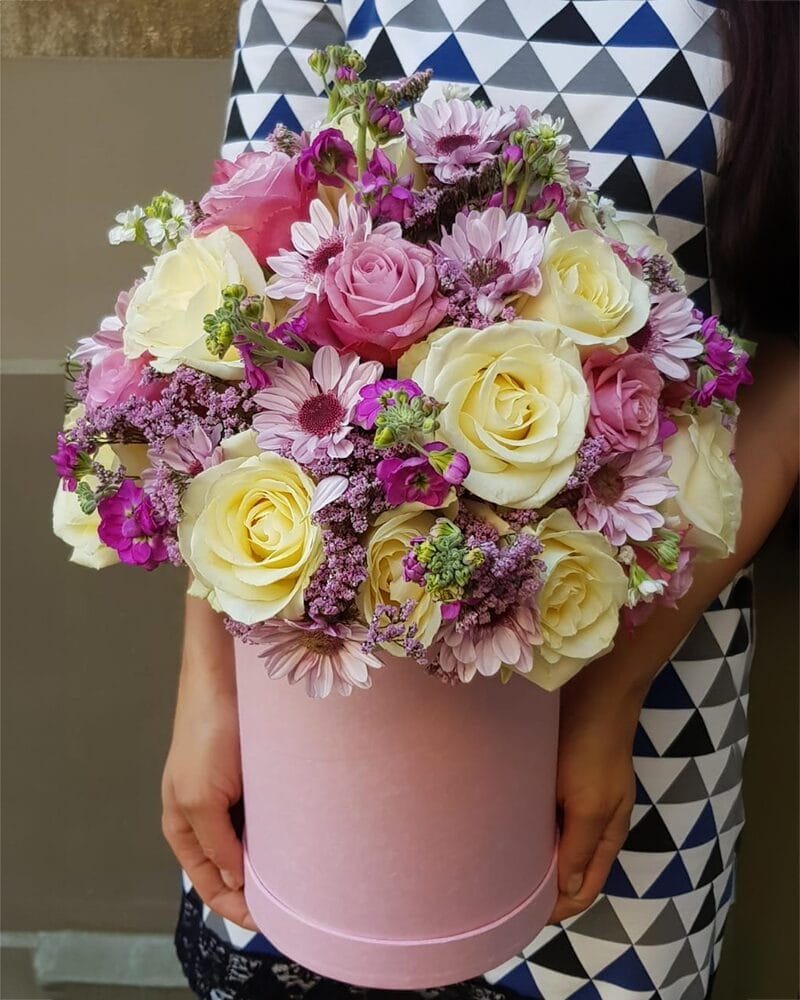 Sākums » Ziedu katalogs » Mātes diena » Ziedi kastē, vasarīga kompozīcija