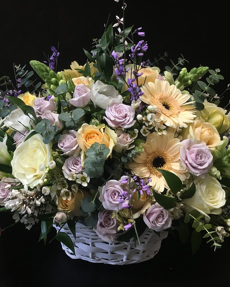 Sākums » Ziedu katalogs » Ziedu grozi » Ziedu grozs pasteļtoņos
