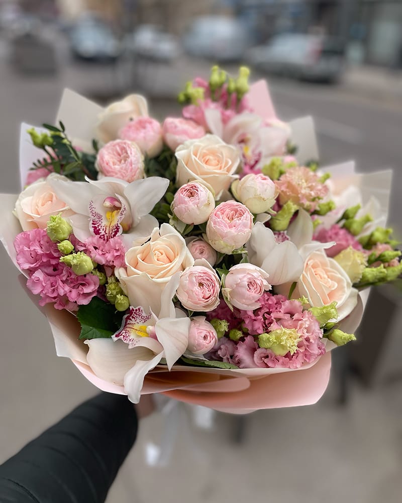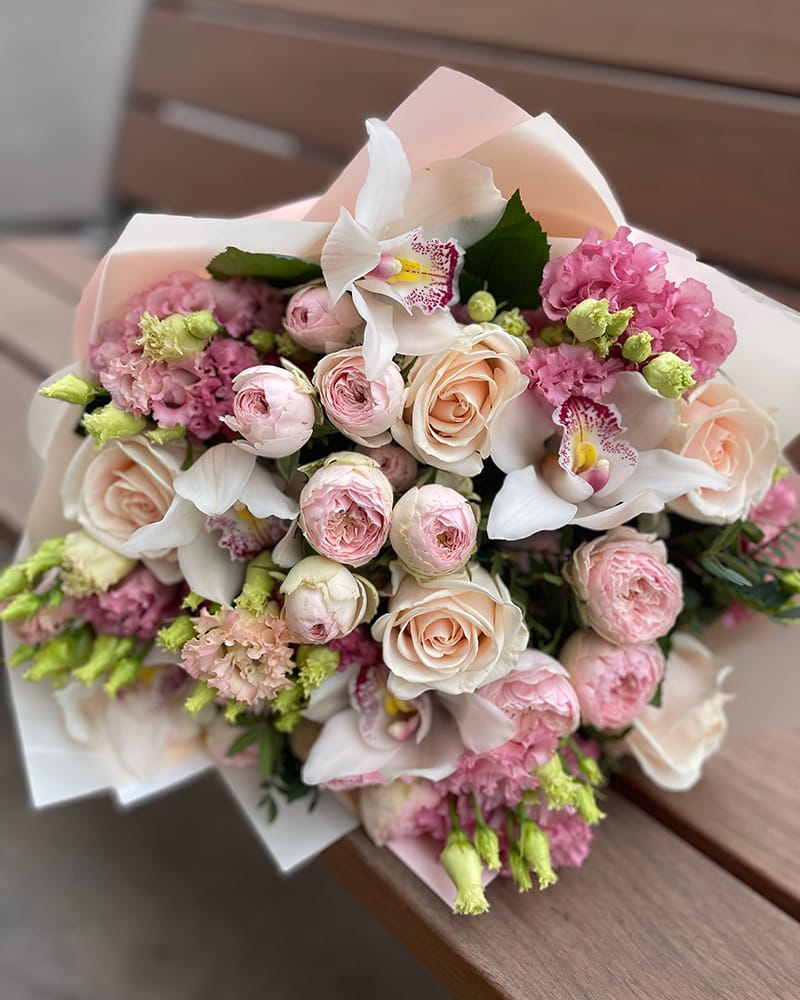 Sākums » Ziedu katalogs » Ziedu pušķi » Ziedu pušķis pasteļtoņos