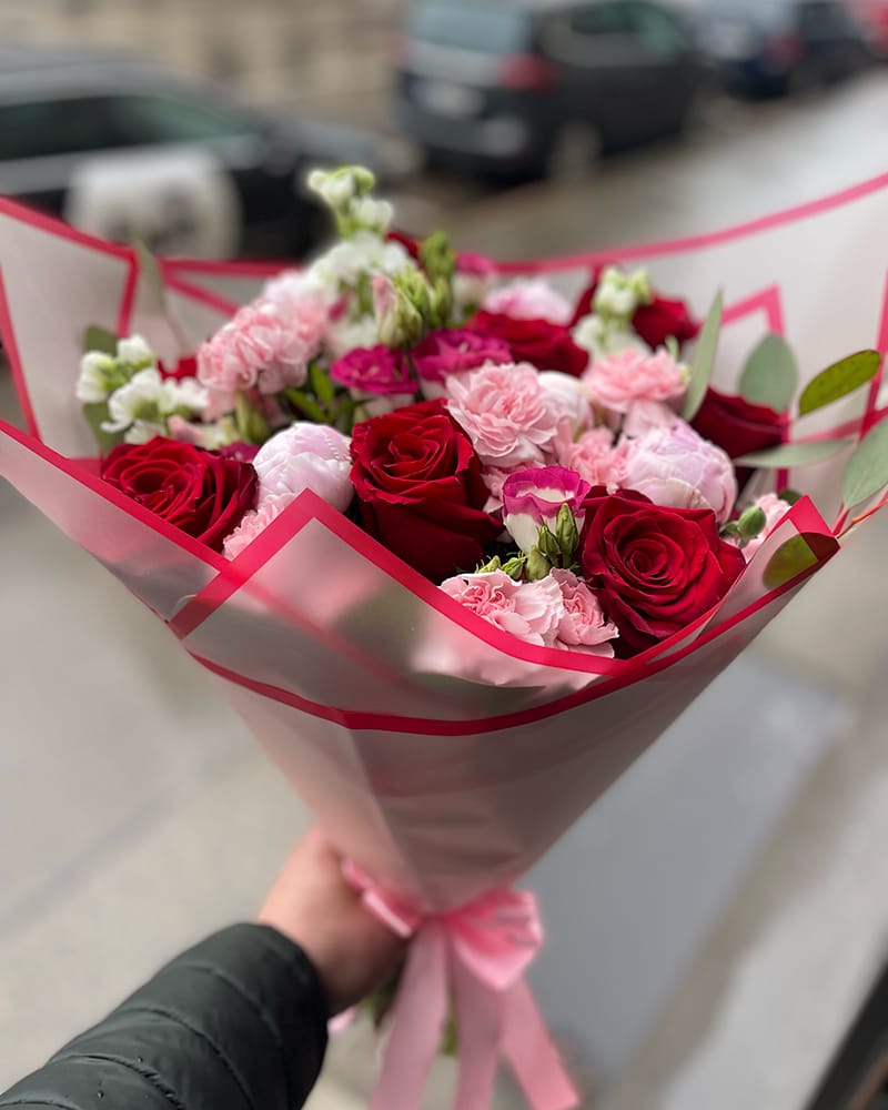 Ziedu pušķis, rozes, peonijas, mixZiedu pušķis, rozes, peonijas, mix
