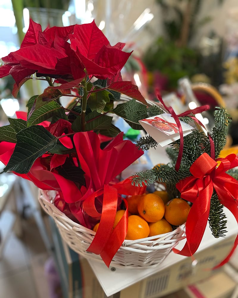 Sākums » Ziedu katalogs » Svētku kolekcija » Ziemassvētku kompozīcija grozā